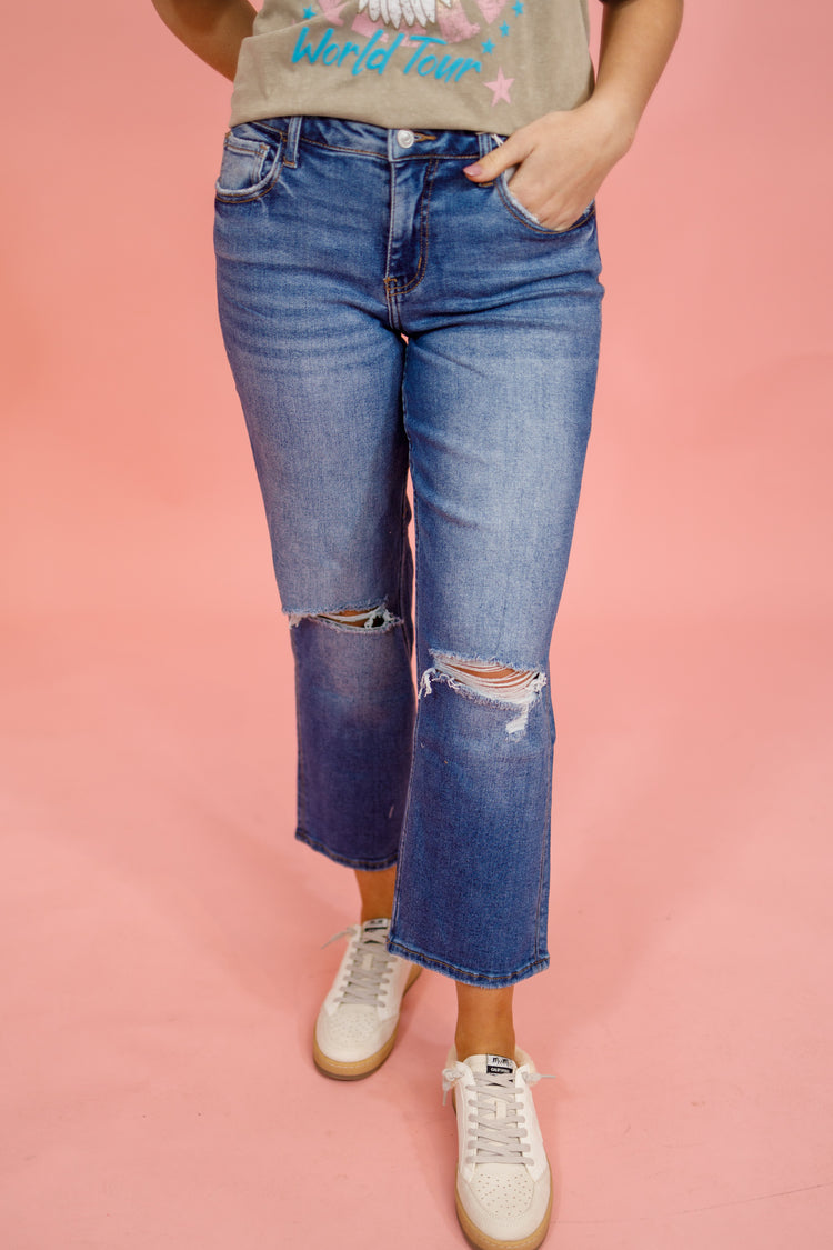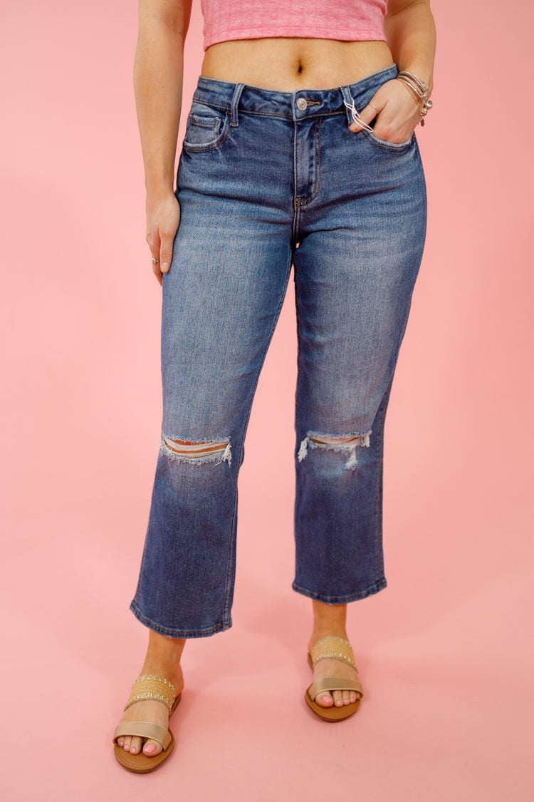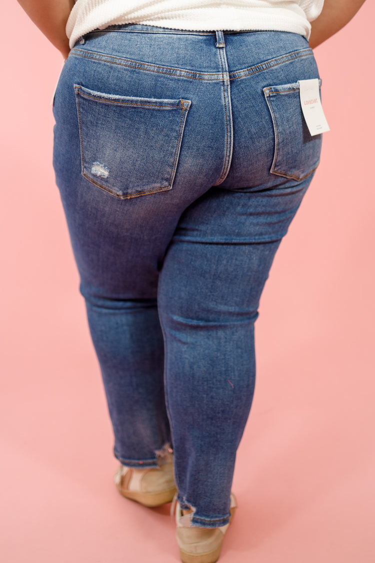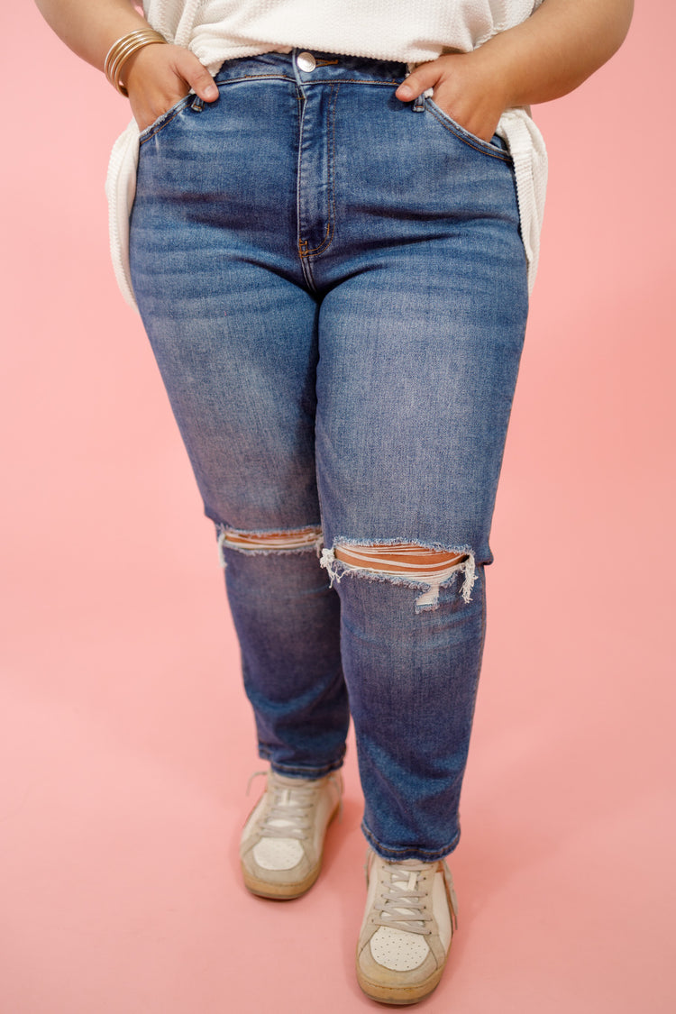Vervet Dark Devon Distressed Knee Jeans, REG + CURVY