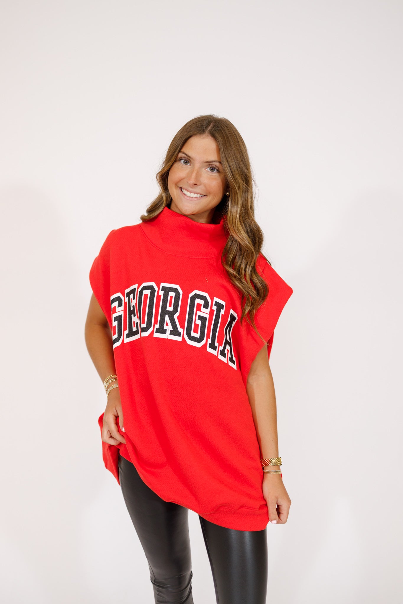 'GEORGIA', Print Oversized Muscle Top - Sweatshirt-inspired design - Exaggerated turtle neckline - Slightly capped sleeves - Dropped armholes - Side slits at bottom