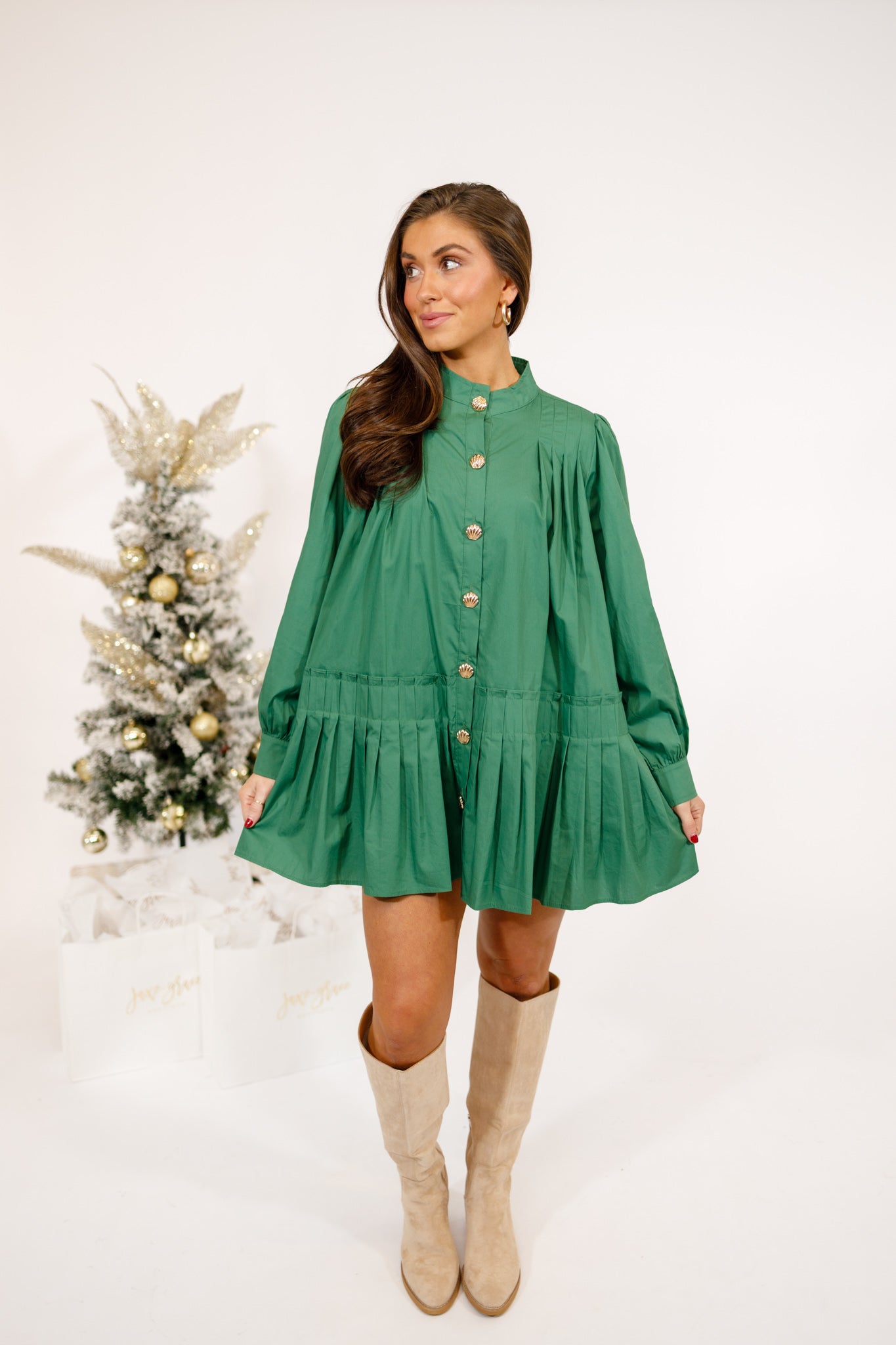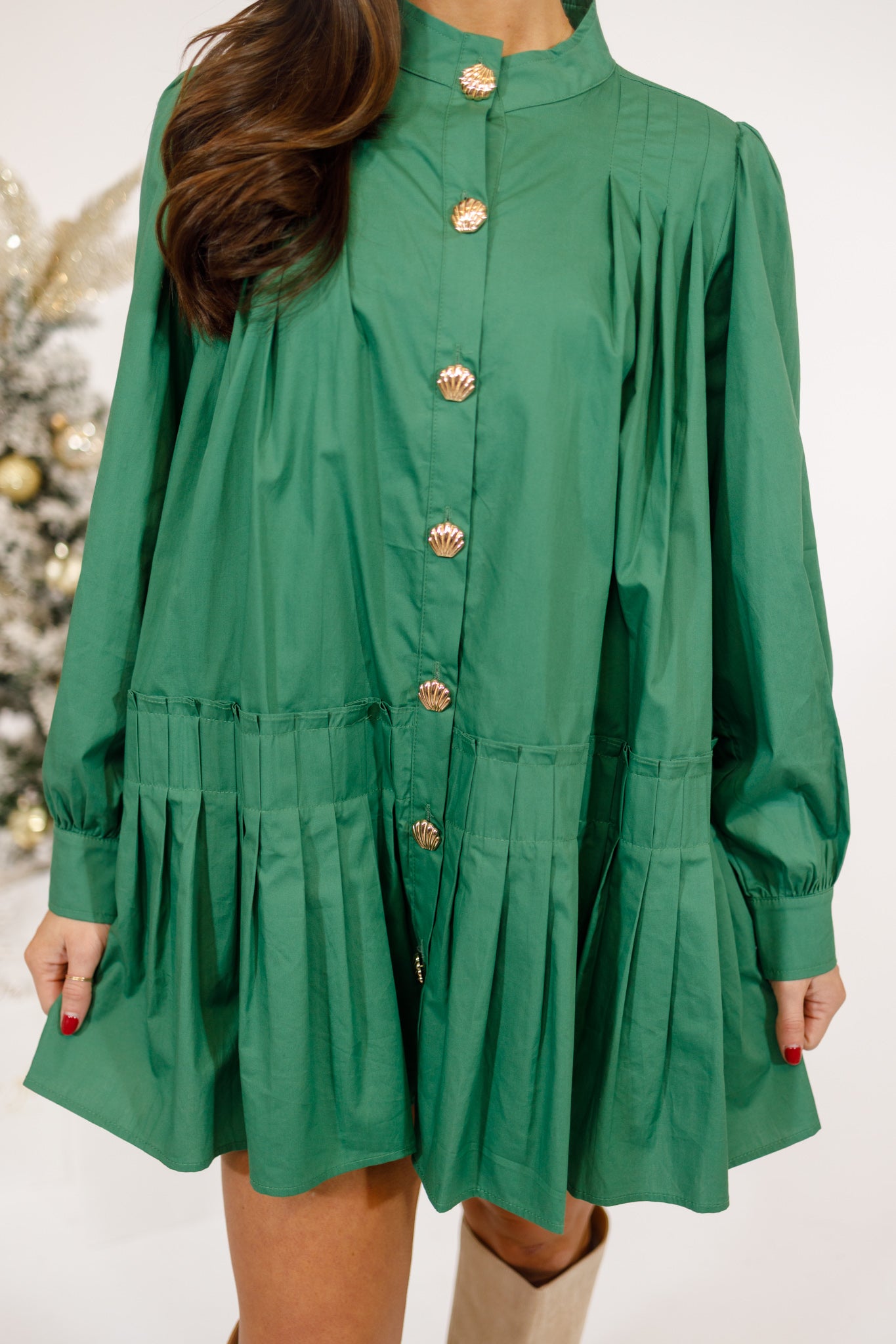 Green Pleated Poplin Dress