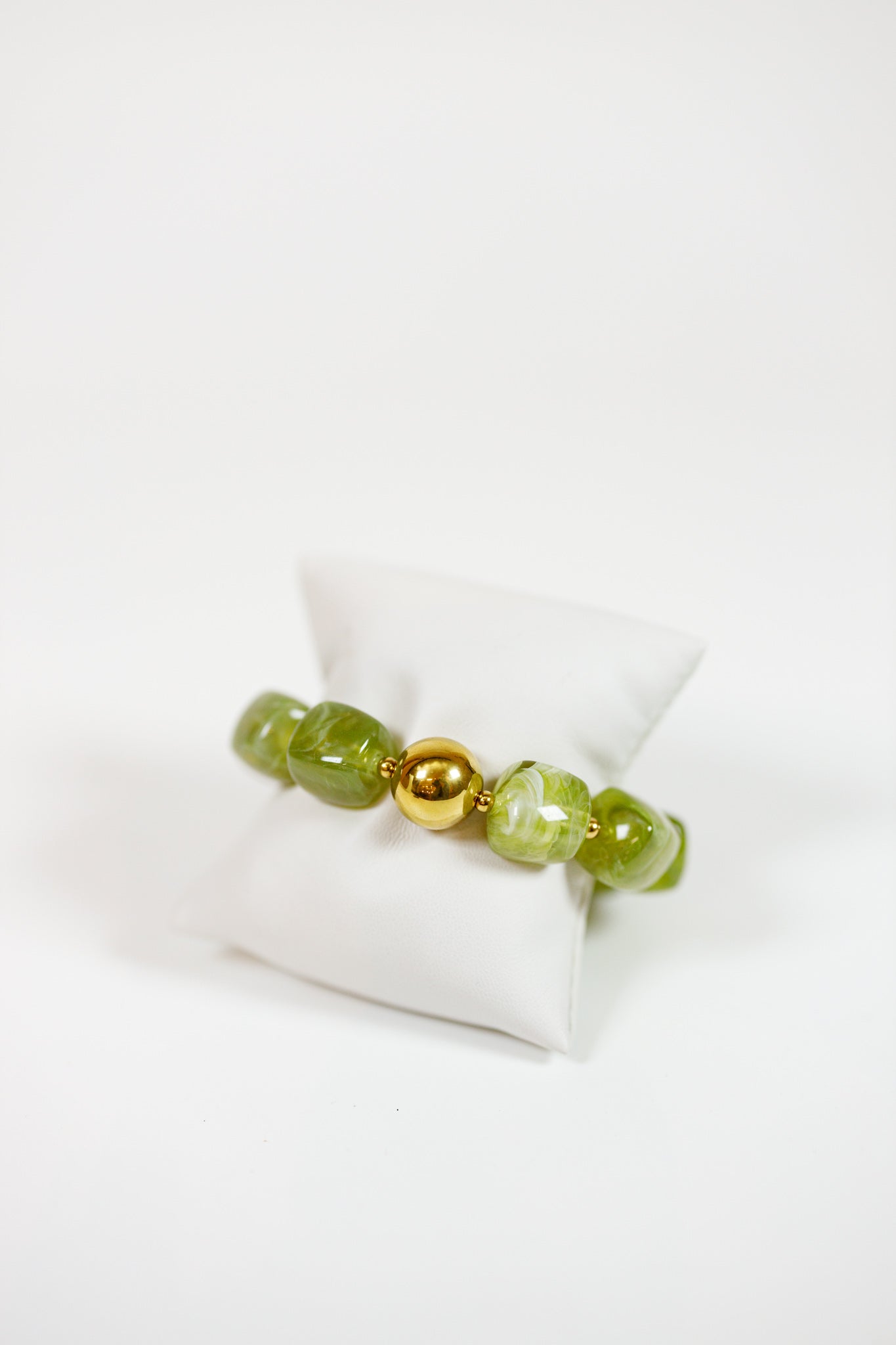 Elegant beaded bracelet featuring lustrous gold accents. Perfect for layering or wearing solo, this versatile piece adds a touch of sophistication to any outfit. Comfortable fit for everyday wear.