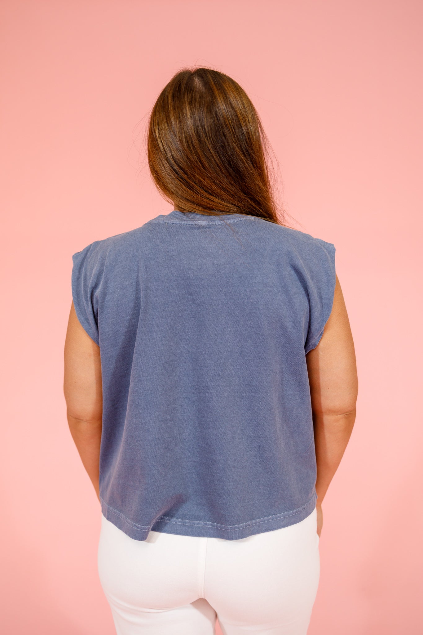 Get all of the summer-y vibes in our oversized retro inspired Lake Daze cropped muscle tank! - Features the phrase "Always in a Lake Daze" in a light blue ink - Screen print transfer that is heat pressed onto each tshirt - Tshirt is a super soft, garment dyed cropped muscle tank - Oversized Fit - Sizing Translation: XS/S - M, S/M - L, L/XL - XL, 2XL/3XL - 2XL