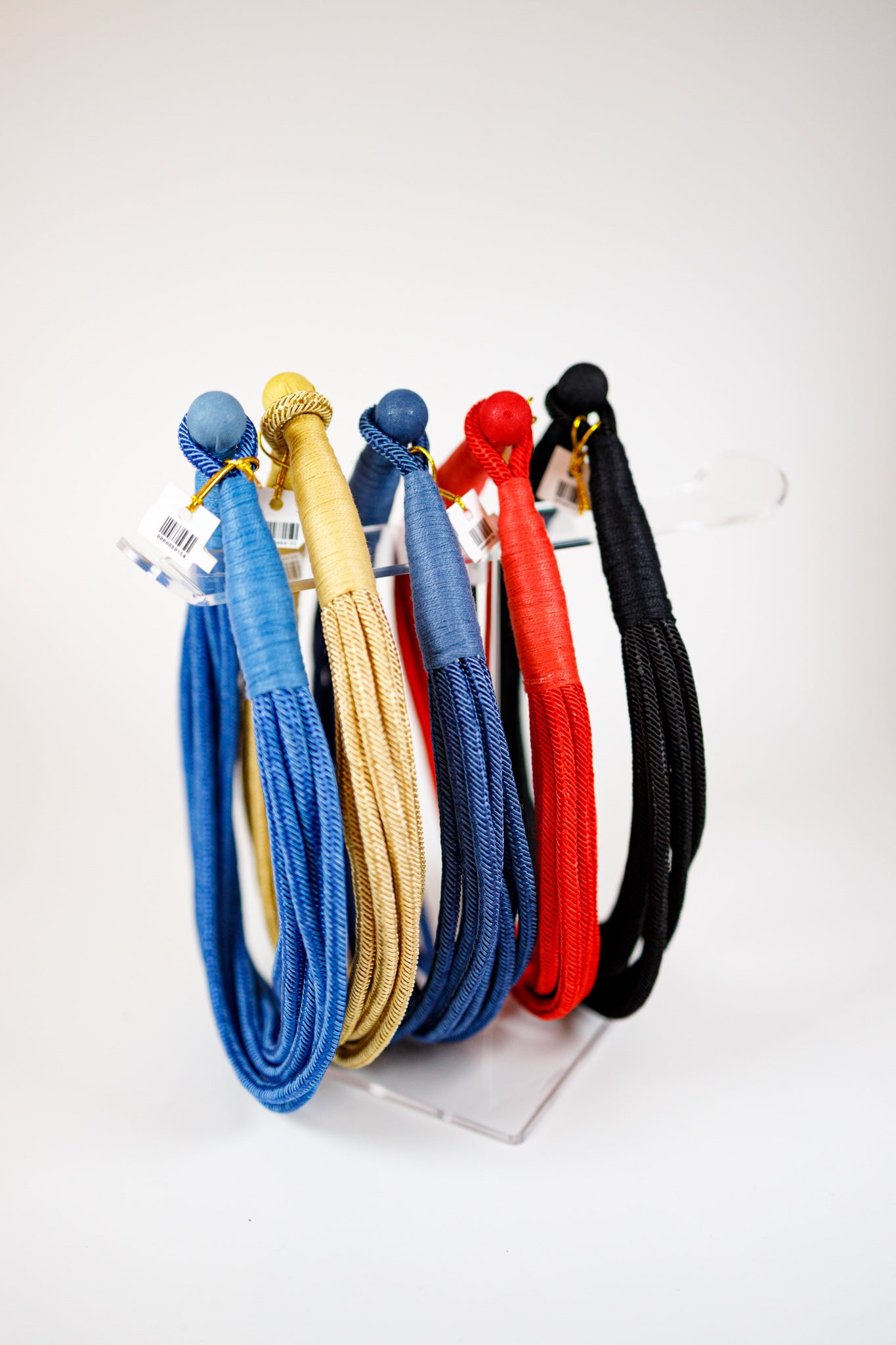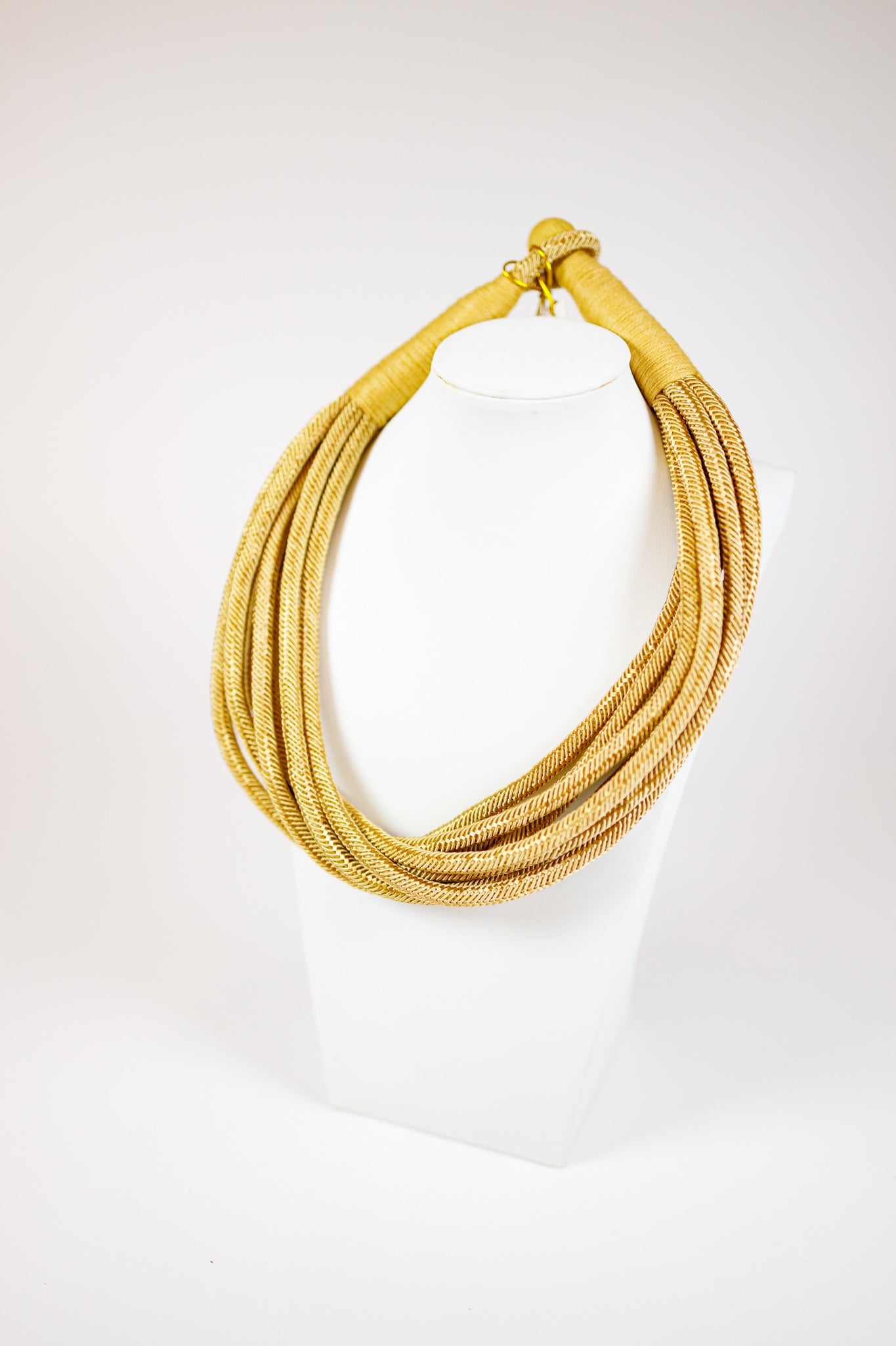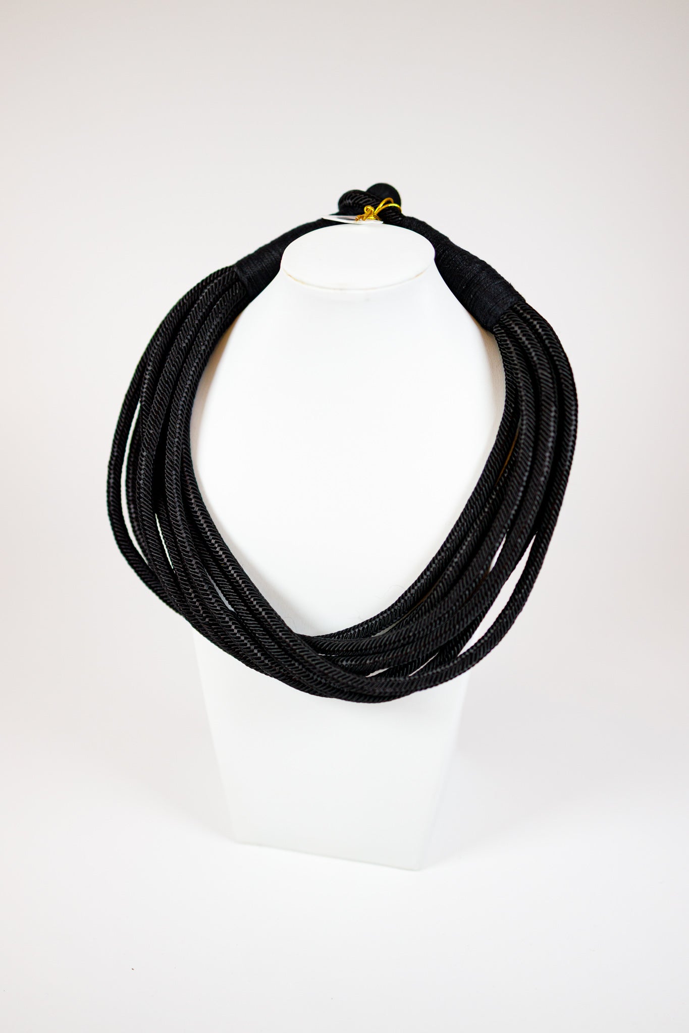 The only necklace for any season. Necks will be cool and comfortable in this showstopper. 24-inches long with 8-strands of cotton roping. Easy ball-n-eye closure. Exclusive 242South Design.
