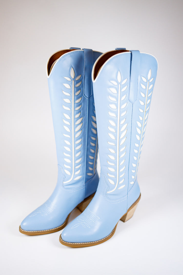 Cowgirl or not, these boots will definitely make a fashion statement - Blue Block Heel Cutout Western Boots.