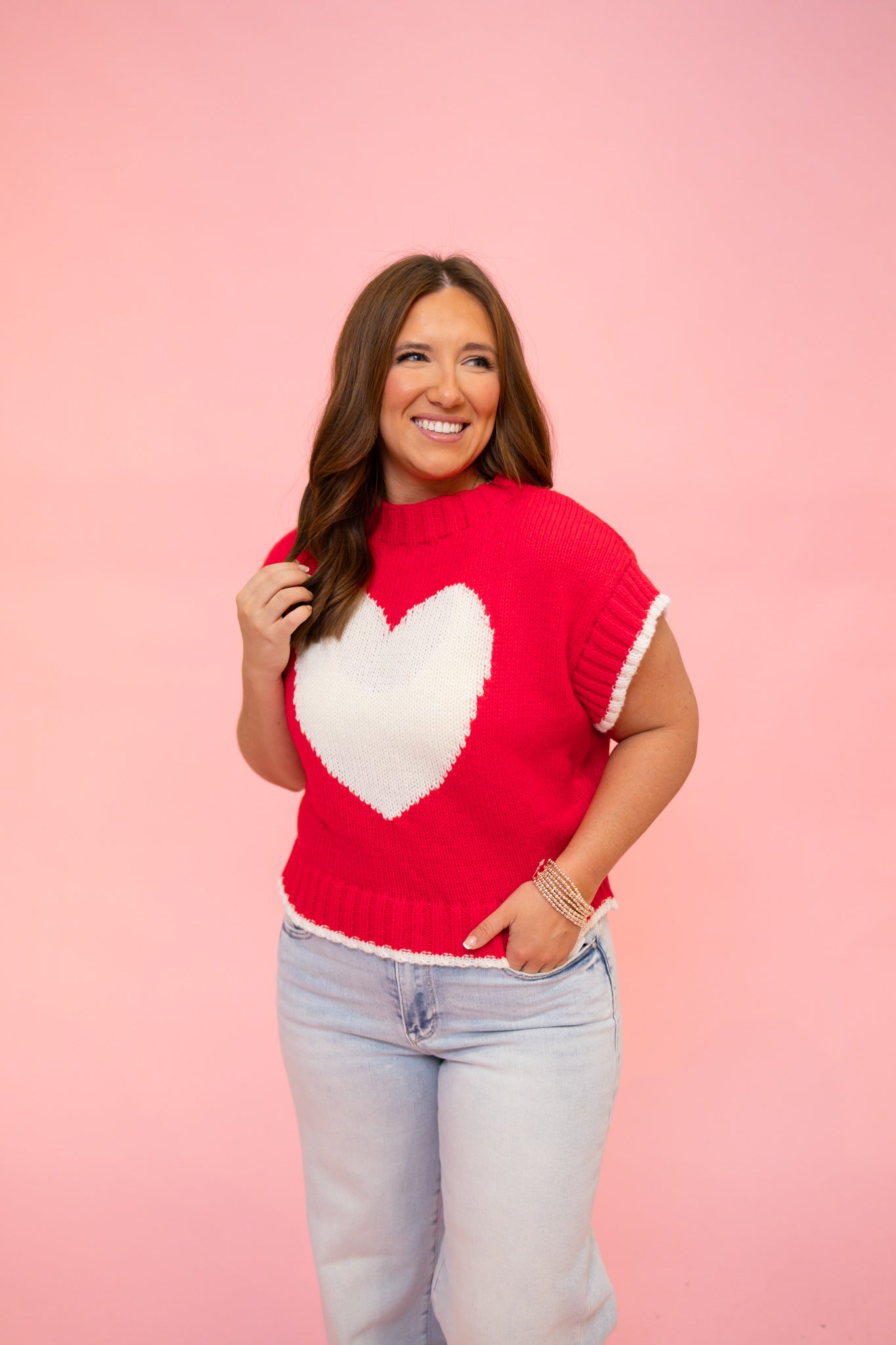 Celebrate the season in this charming boxy sweater knit top, featuring a playful heart design perfect for Valentine's Day.