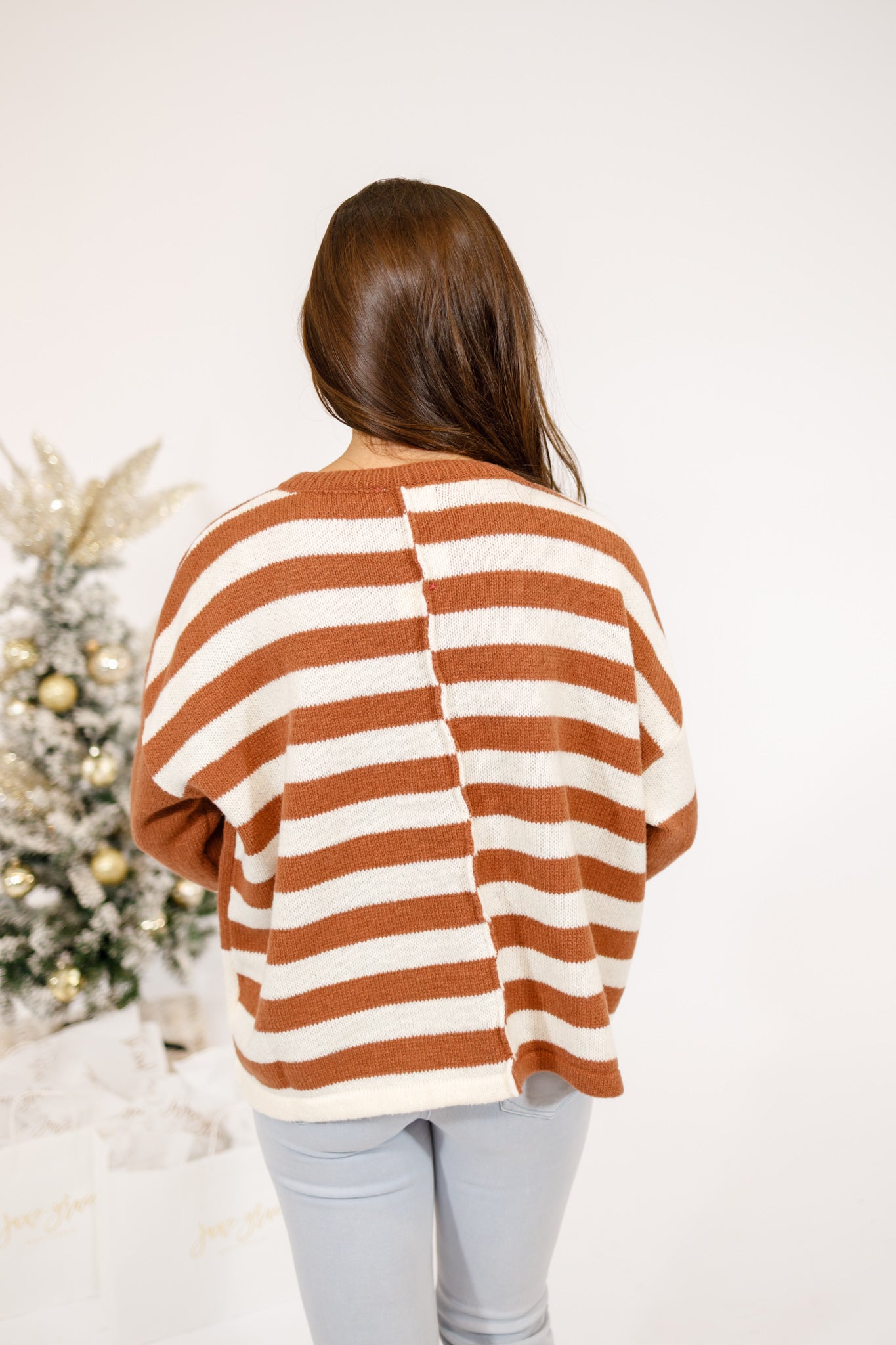 Brown Color Block Knit Sweater Top