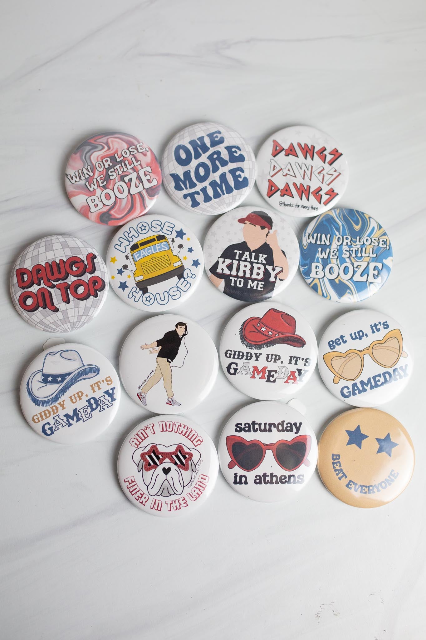 Rep your team in the best way--gameday buttons! These buttons were personally and carefully designed by Thanks For Everything and we are so excited to share them with you while also supporting small.