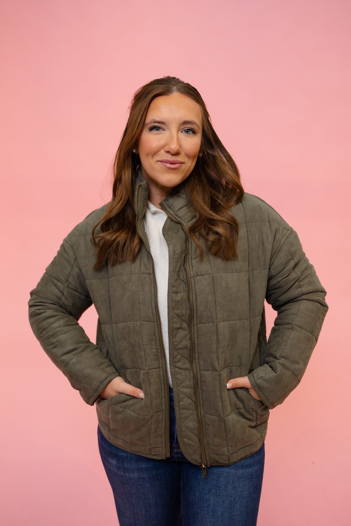 This versatile jacket combines style with practicality. The front zip closure and functional pocket keep essentials within reach, while quilted detailing provides warmth and contemporary flair.