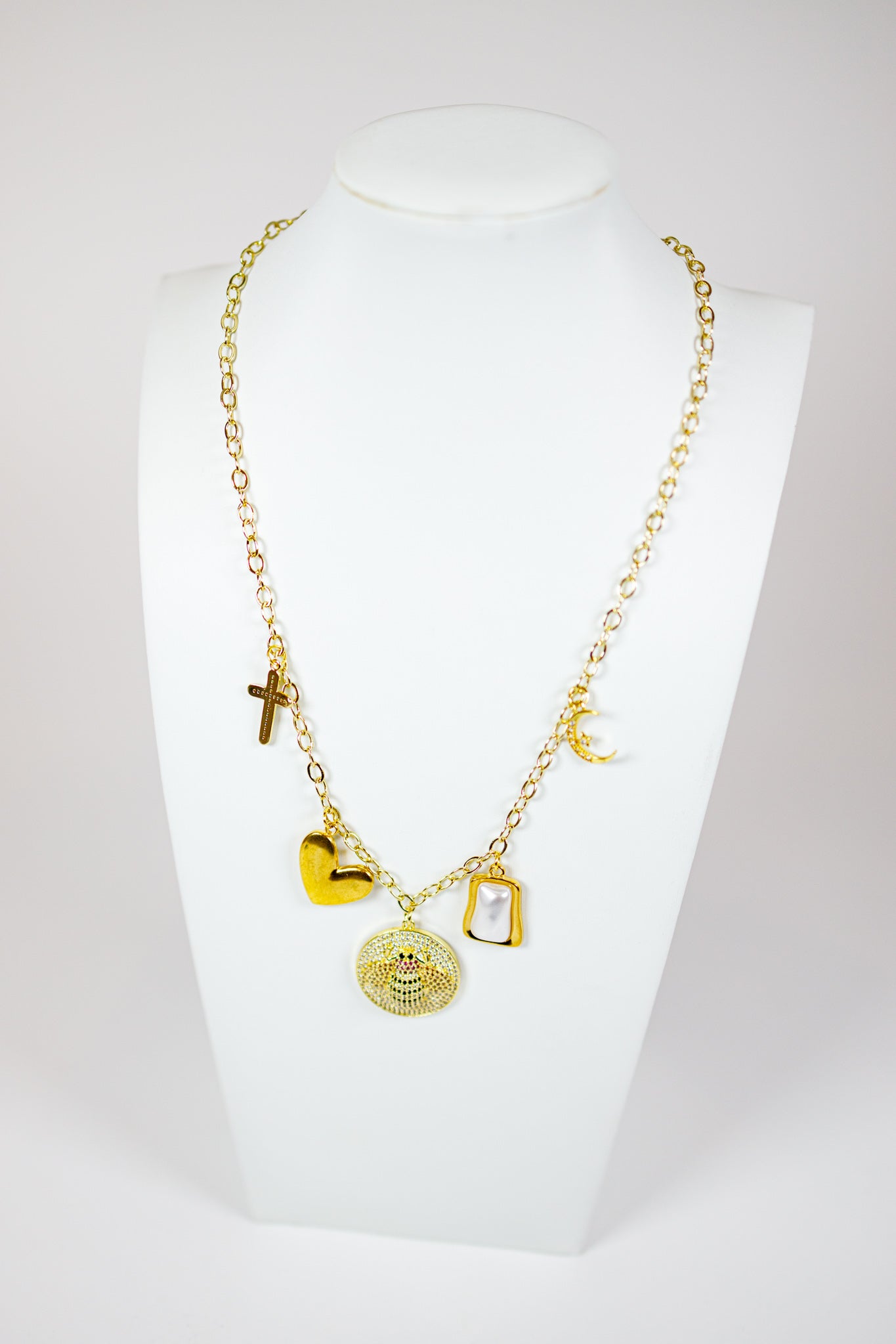 Introducing the HD Bumble Bee Multi Charm Necklace - perfect for those who love to buzz around in style! This quirky and fun accessory features multiple charms, including a playful bumble bee. Embrace your playful side with this one-of-a-kind necklace.