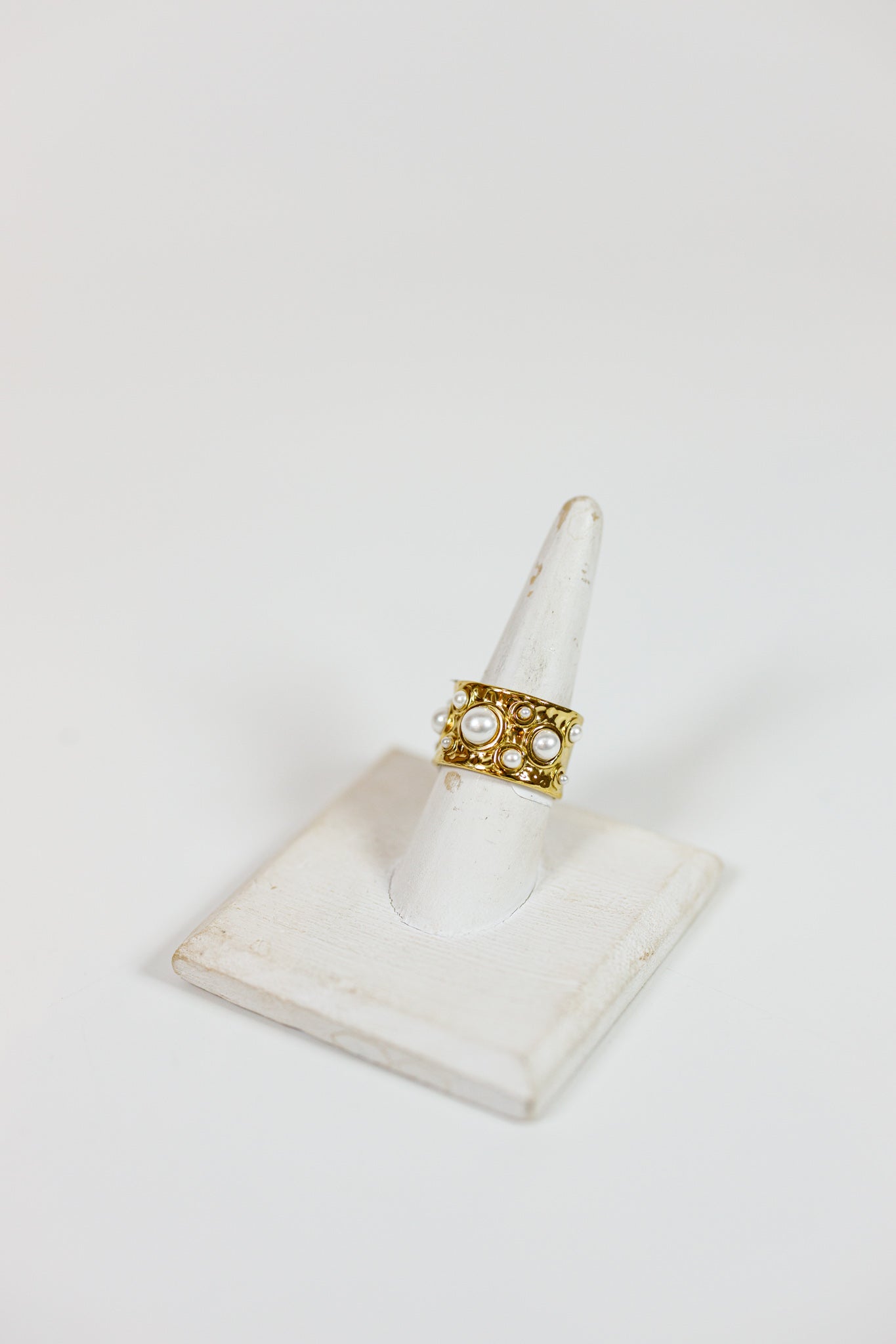 Elegant pearl cuff ring adorned with studded detailing for a sophisticated, eye-catching look.