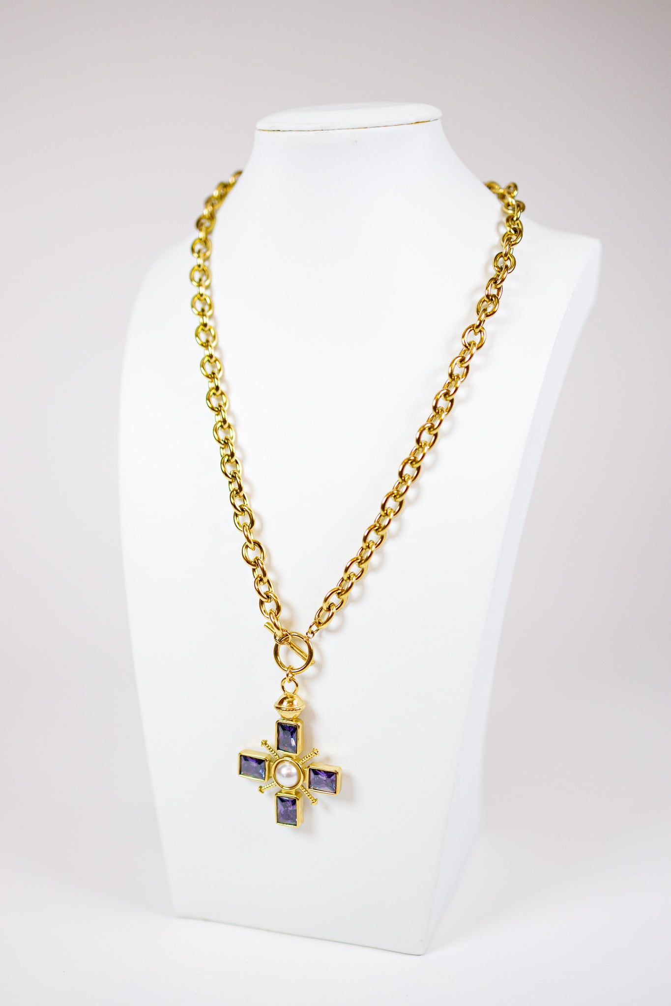 HD Purple Jewel & Pearl Cross Necklace