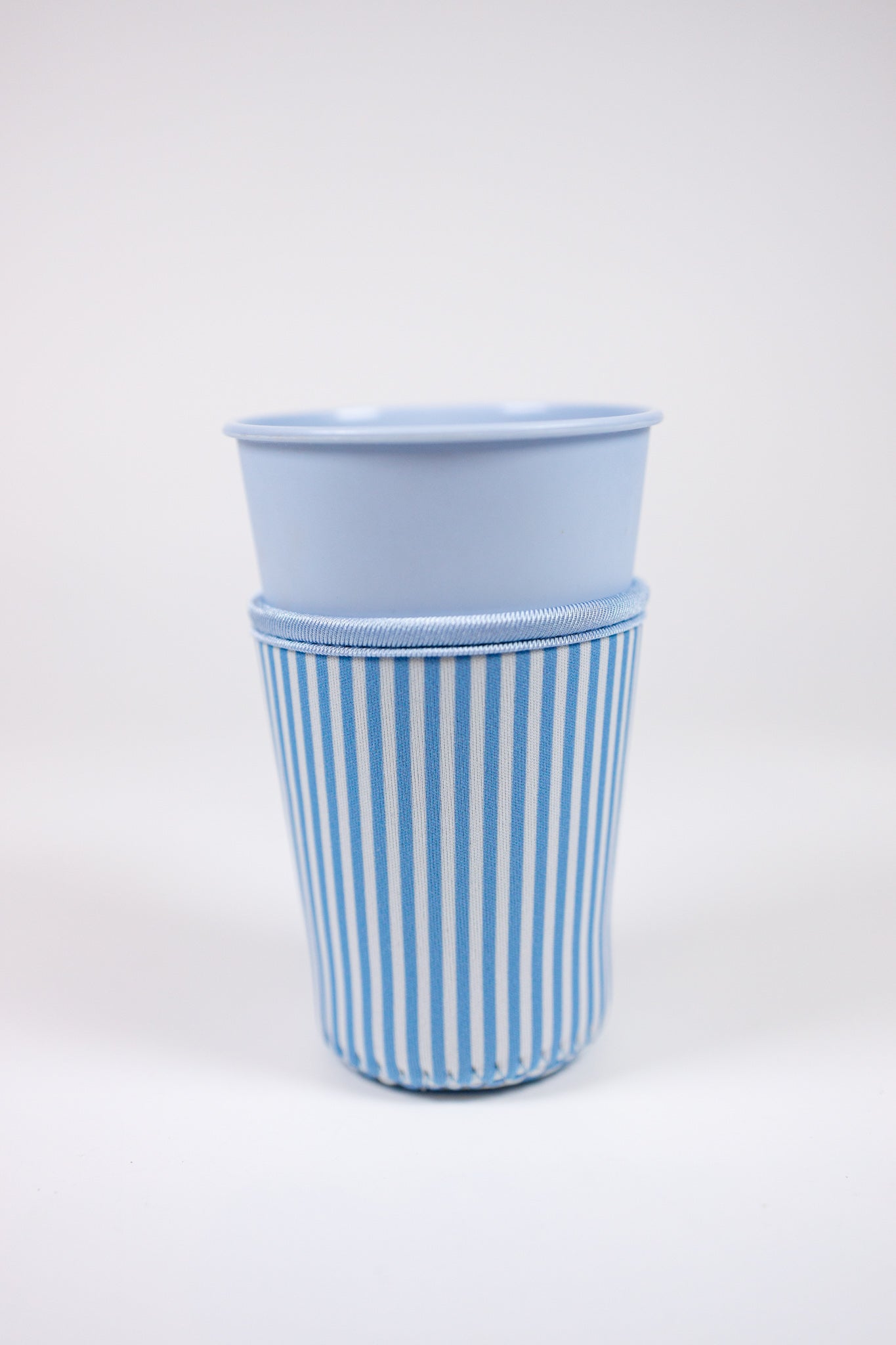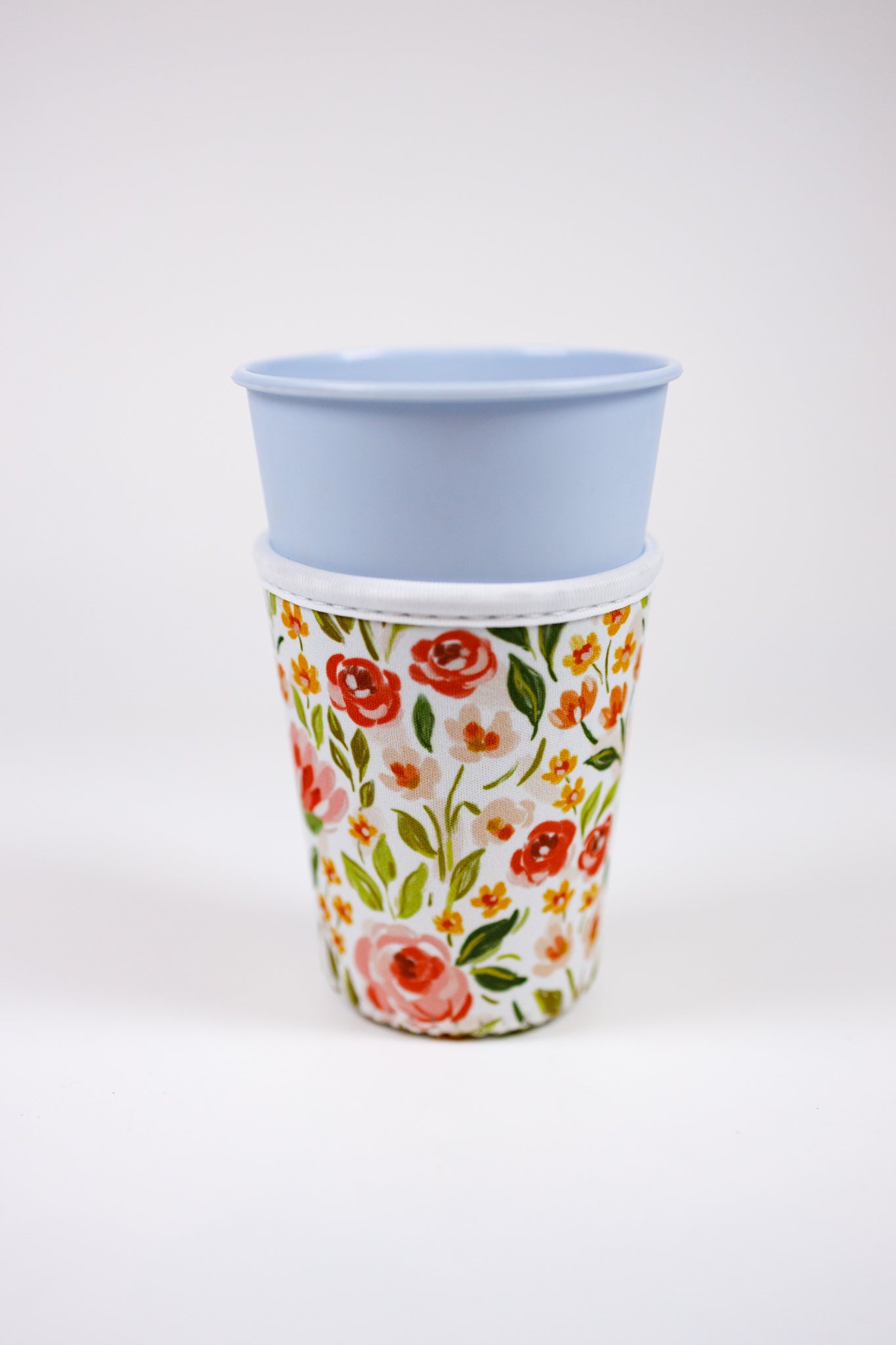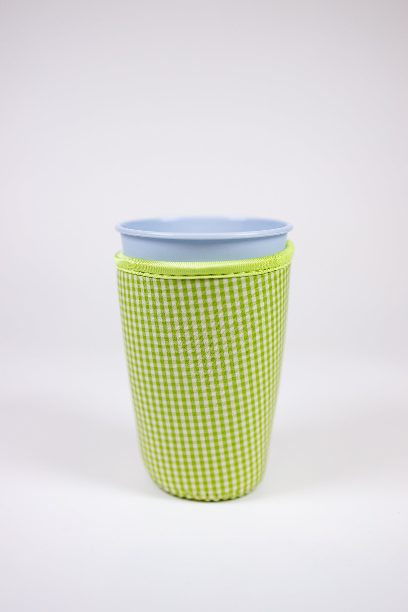 Our drink sleeves are the perfect companion for your on-the-go beverage needs! Created to fit snugly around small or medium to-go cups, they are constructed from durable neoprene material. These sleeves offer exceptional thermal insulation to keep your hands comfortable while preventing condensation from forming on your cup. - Regular fits small to medium to-go cups: 3.75" tall, 2.5" across the bottom, and 3" across the top - Large fits medium to large to-go cups: 5" tall, 3" across the bottom, and 3.5" across the top - 100% neoprene - Imported - For best care, handwash in cold water and lay flat to dry