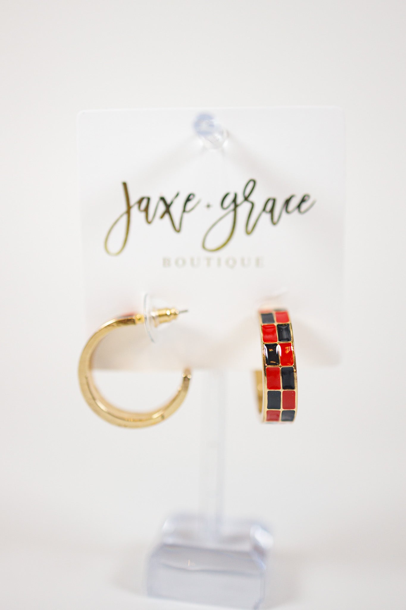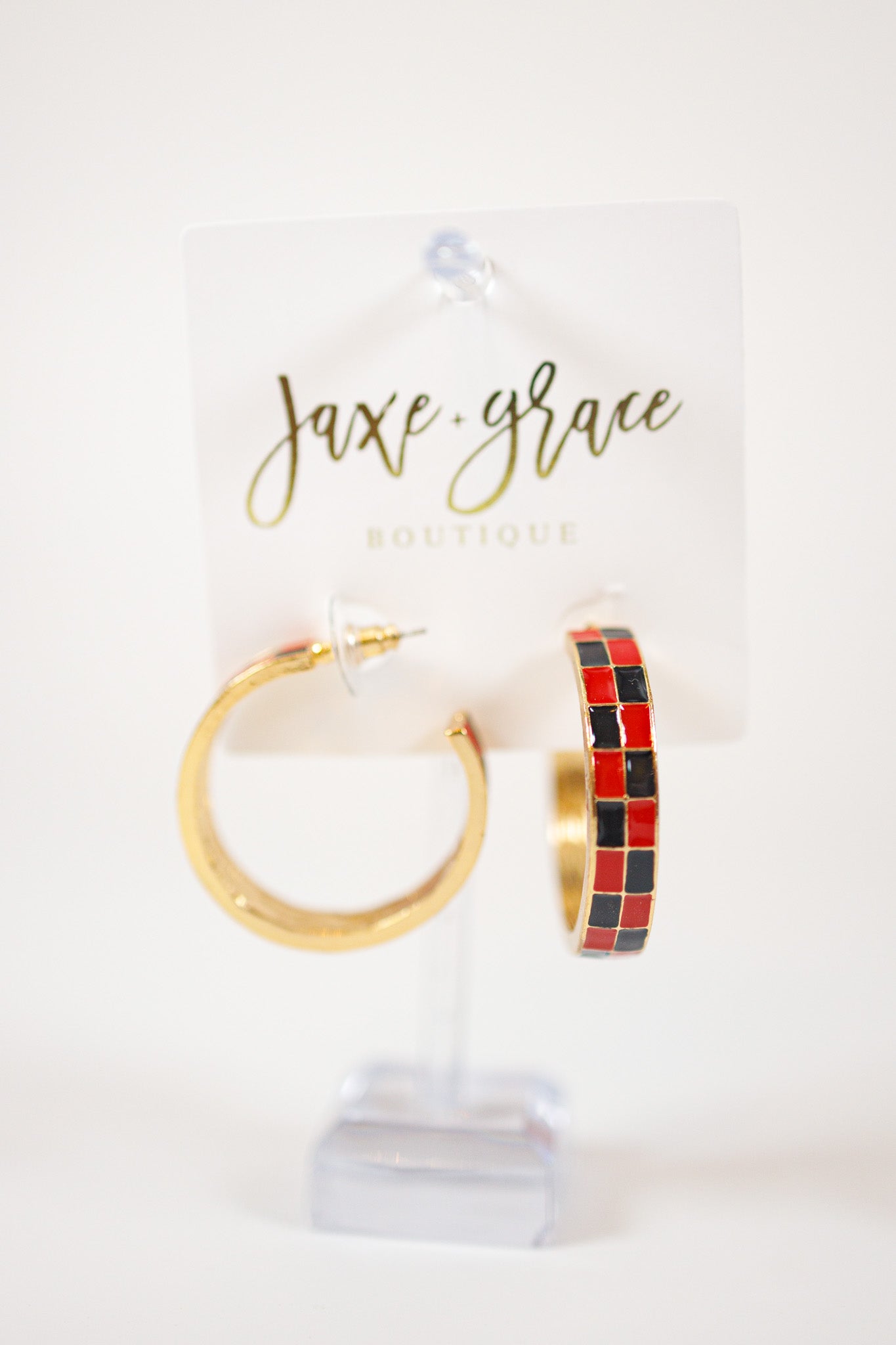 Attention all fashionistas! These MM Red and Black Earrings come in various styles and sizes, making it easy to find the perfect fit for your unique style. Don't miss out on adding a touch of red and black flair to your wardrobe with these chic and playful earrings by Michelle McDowell.