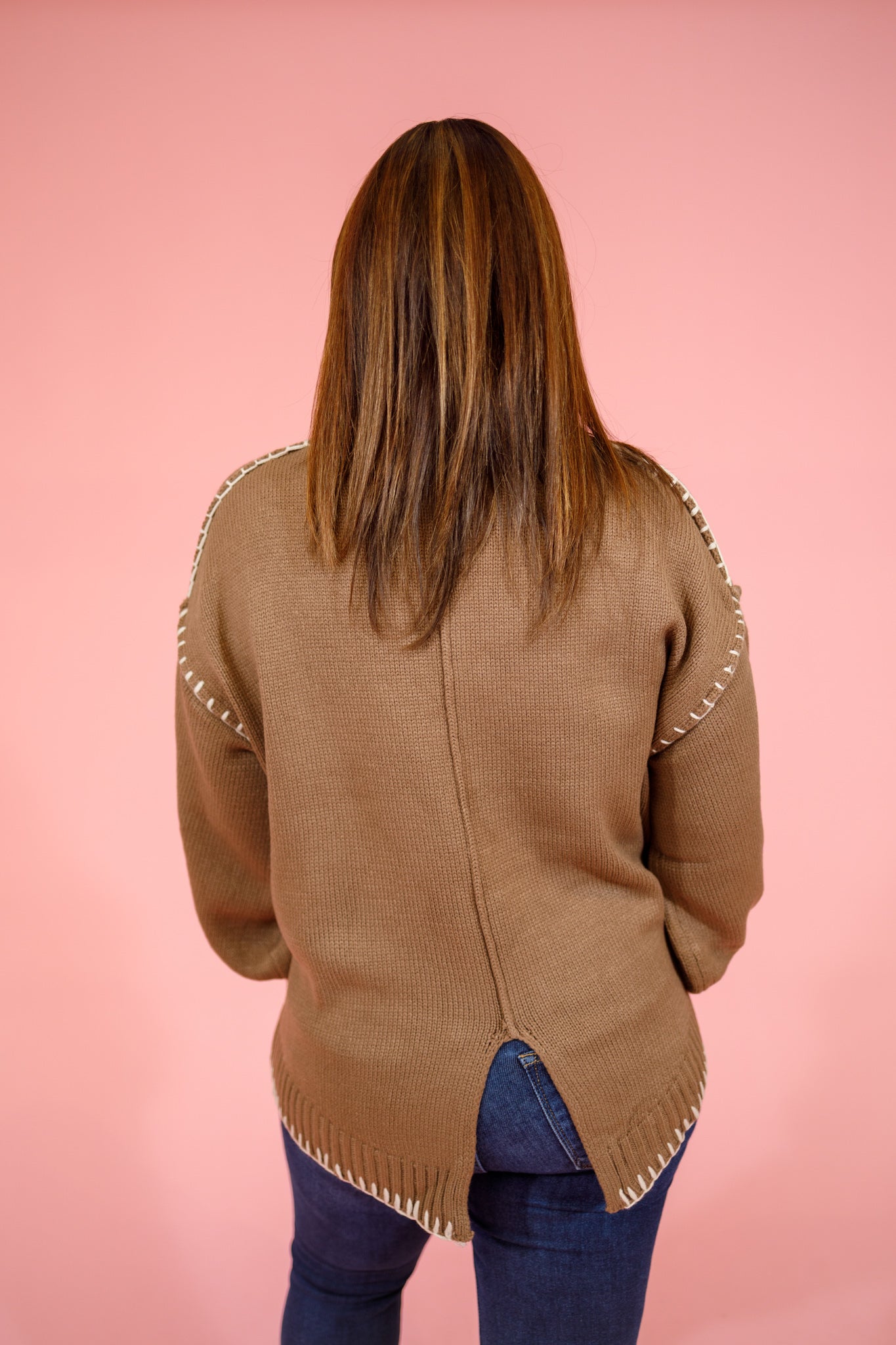 Mocha Mock Neck Stitch Sweater