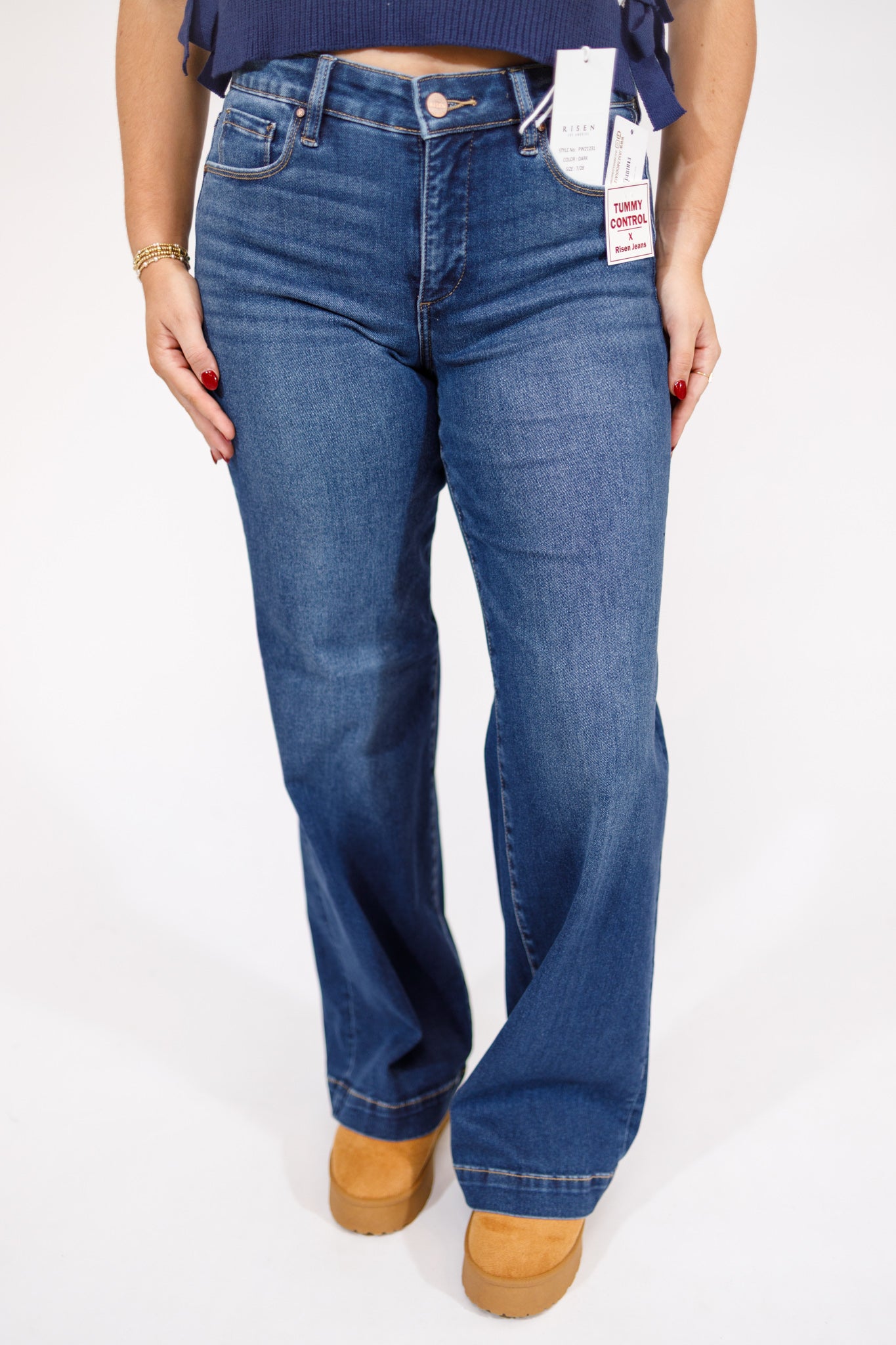 TUMMY CONTROL MID RISE WIDE LEG FRONT & BACK IRON PRESS LINE DETAILED JEANS - Rise 9 1/2" | Inseam 32 1/2" in size 3/26