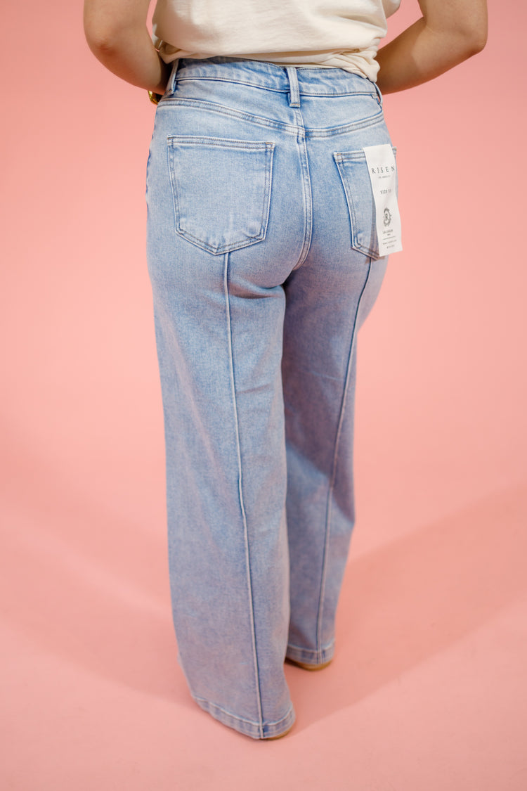 HIGH WAIST WIDE LEG PINTUCK DETAILED JEANS - Rise 11 1/2" | Inseam 31" in size 3/26