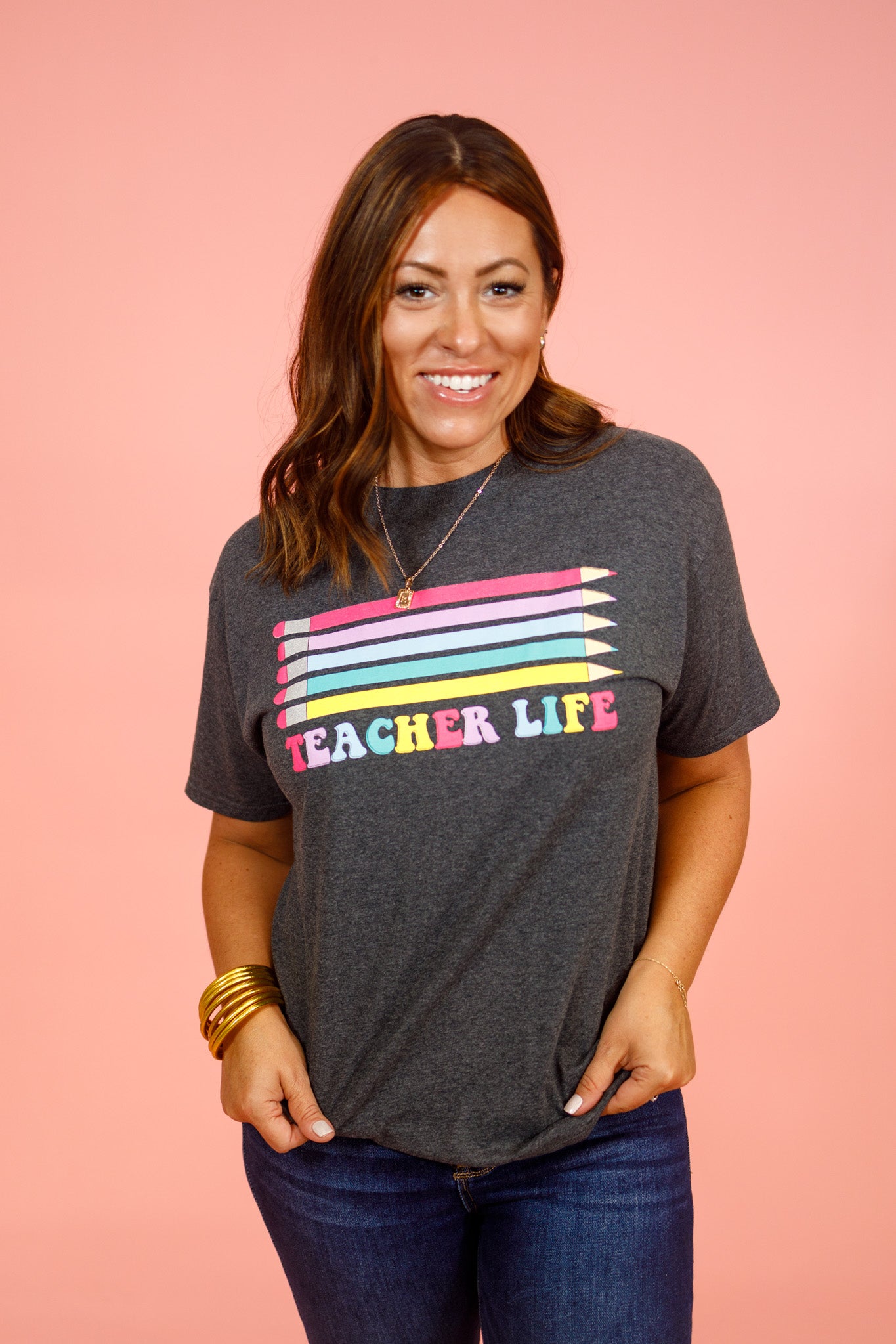 "Teacher Life" Pencil Graphic Tee, S-2XL