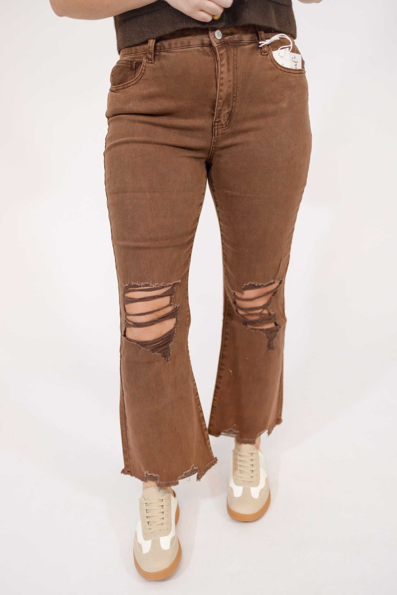 ACID WASHED HIGH WAIST DISTRESSED STRAIGHT LEGGED PANTS - GOOD STRETCH - DISTRESSED KNEE AND HEM *Each item is unique, expect variations in color and finishing FRONT RISE: 10.75", INSEAM: 27.5" approx. LEG OPENING: 19" approx.